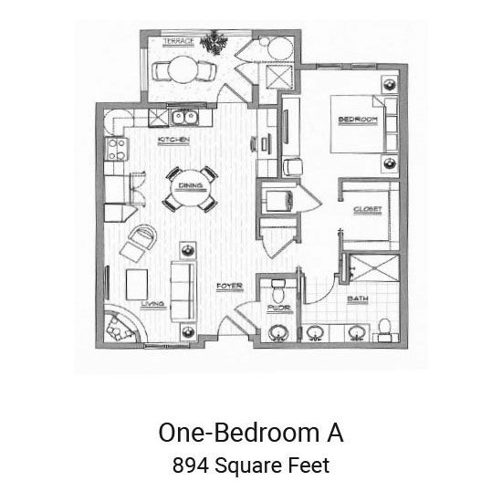 - Spacious and customizable apartment homes, from 894 sq. ft.– 1,485 sq. ft.